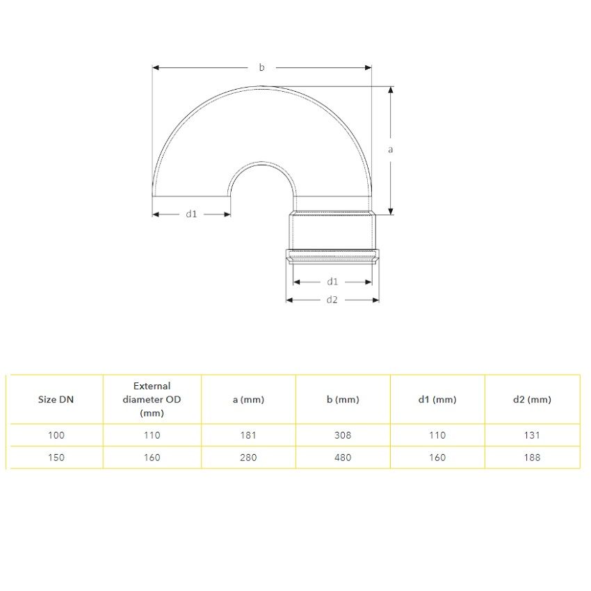 SitaVent Pipe Bend 180 degree with welded socket, made of polyethylene, can be combined with the SitaVent vapour barrier cap. Included in the SitaVent pipe fairlead package.