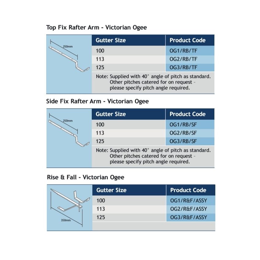 Heritage Victorian Ogee cast aluminium Old Style Side Fix Rafter Bracket with 40 degree angle, available in 3 gutter sizes.