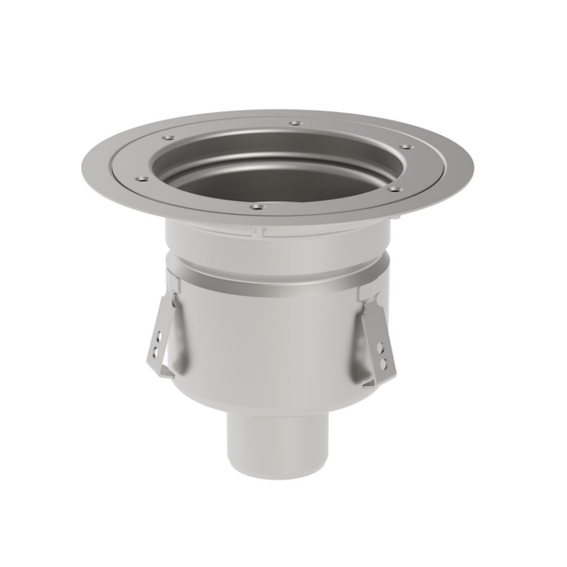 Blucher Stainless Steel Industrial Vertical Drain Fixed Height for Vinyl Floors, Spigot, 75mm & 110mm Connection, Frame Size 232mm or 332mm. All gratings sold separately.
