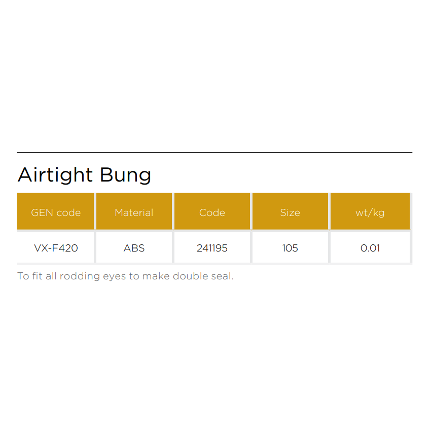 Pam Building VortX ABS Airtight Bung, can be fitted to Rodding Eyes to make a double seal. 105mm.