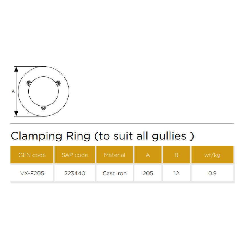 Pam Building VortX Clamping Ring To Suit Floor Gullies. 205mm.
