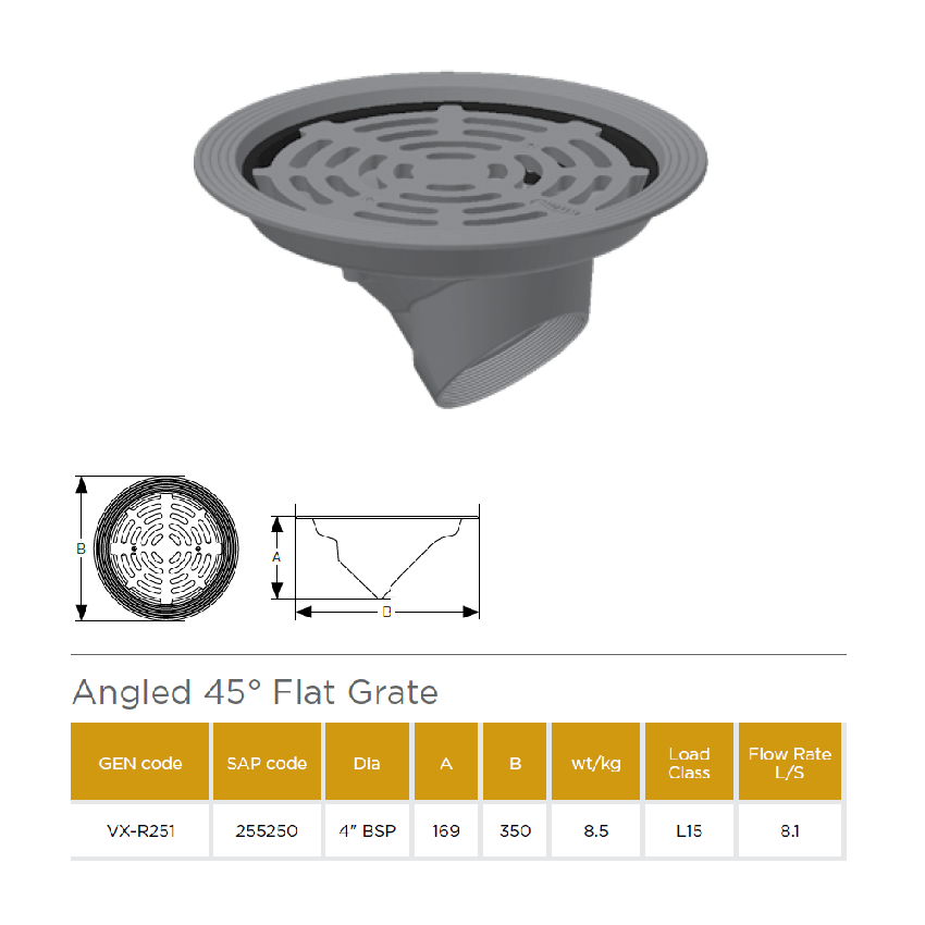 Pam Building VORTX Cast Iron Flat Grates To Suit Vertical Angled Outlets