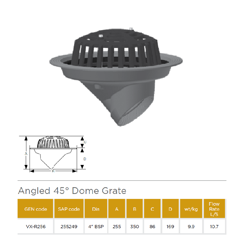 Pam Building VORTX Cast Iron Domical Grate Suites With Vertical Angled Outlets