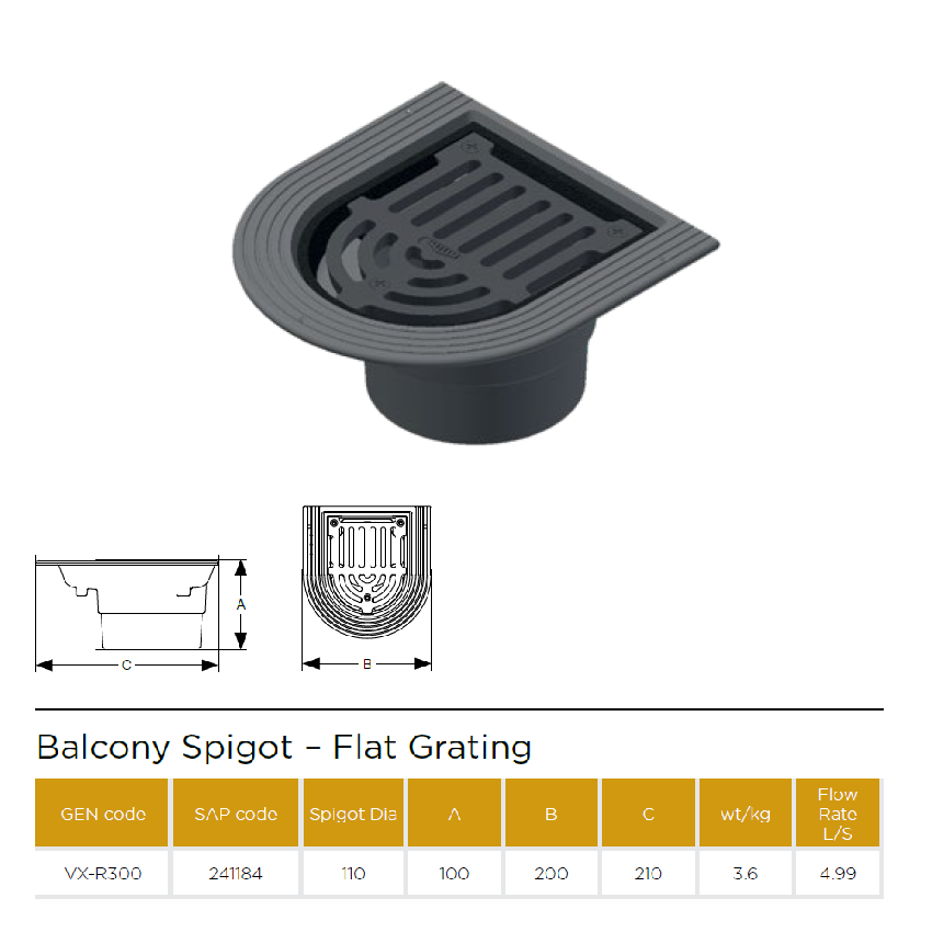• Balcony outlets with Flat or notched gratings
