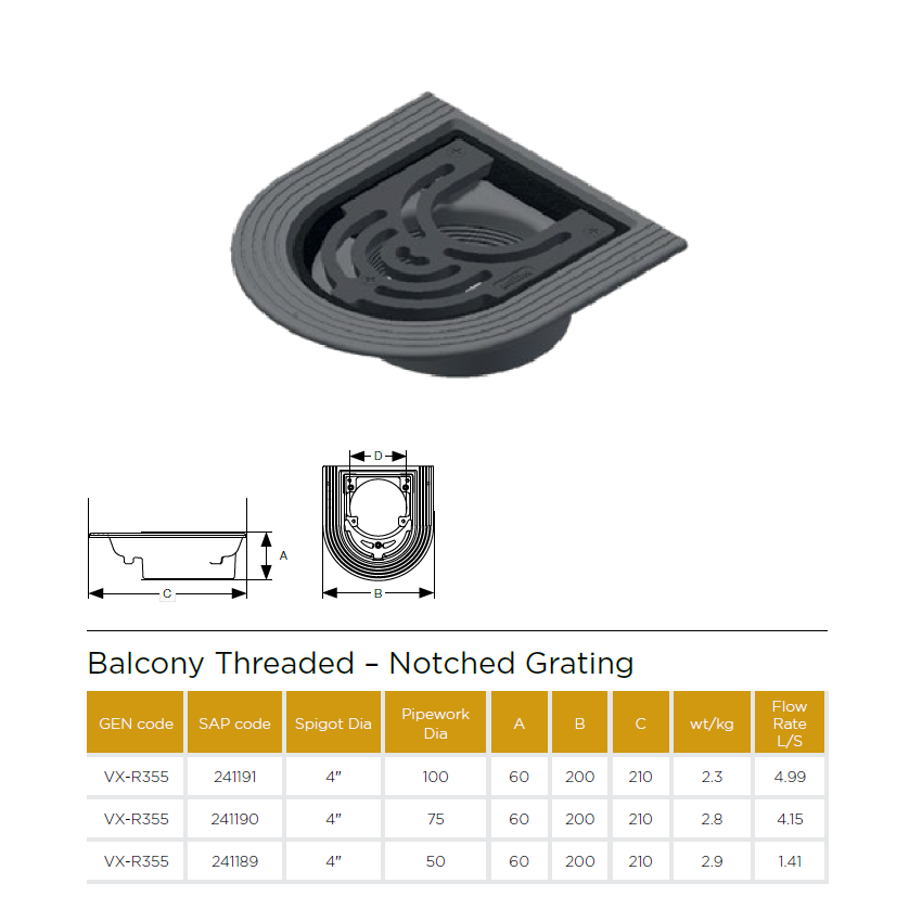 Pam Building VORTX Cast Iron Balcony Roof Outlet With Flat Grate And 110mm Spigot