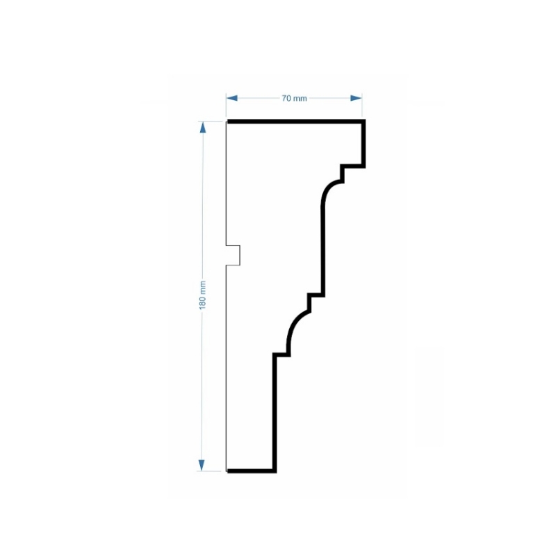EPS External Windowsill Cornice Profile G x 2m Length, profile size 70x180mm, made from EPS Polystyrene Coated in Plaster, With a Sandstone Colour Finish, For External Use, minimum order quantity 5no lengths.